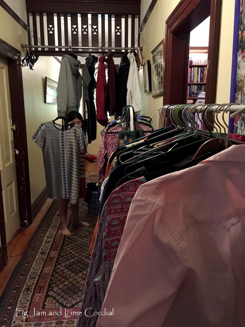 We set up the clothing swap in the hallway, which worked brilliantly! “Swap” is probably a misnomer, because our system was: donate anything you DON’T want, take away anything you DO want. All the leftovers have now been stashed into t-shirt bags for donation to the Salvos.