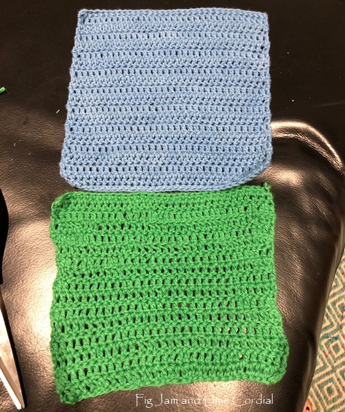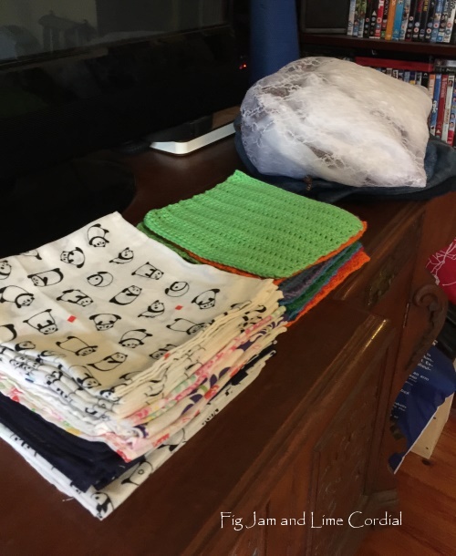 I’d made a stack of cloth napkins, lace vegetable bags and crocheted dishcloths as gifts…
