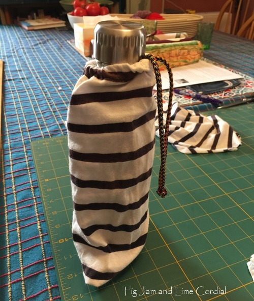 Jenni was very happy to turn her old t-shirt into a bag. The sleeves then became a water bottle holder and a polishing rag…