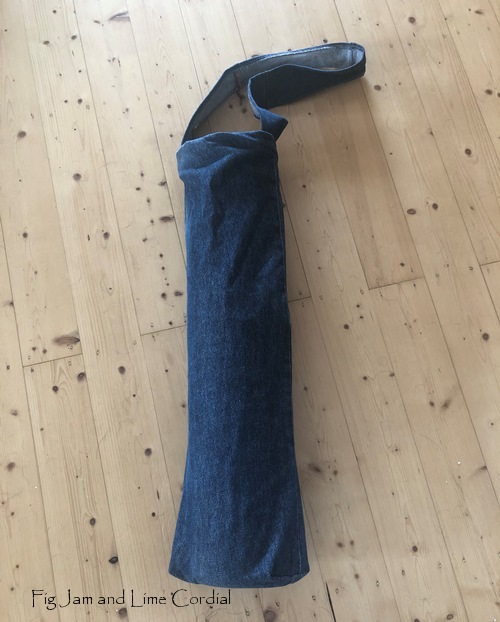The Norsk Nymph asked for a bespoke yoga bag, which came together in minutes from another pair of old jeans (it’s a basic reworking of this bag)…