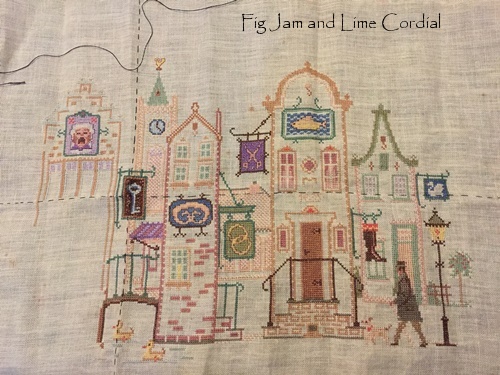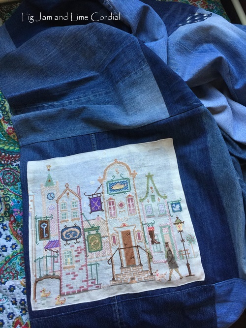 And the street scene cross stitch you acquired and put in your denim blanket is so charming.