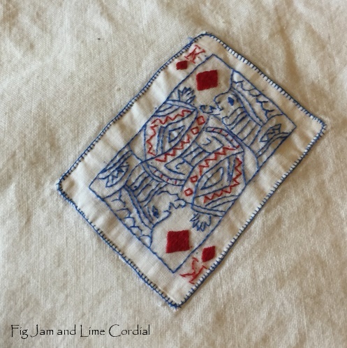 Someone had gone to a tremendous amount of effort, embroidering the card faces on each corner…