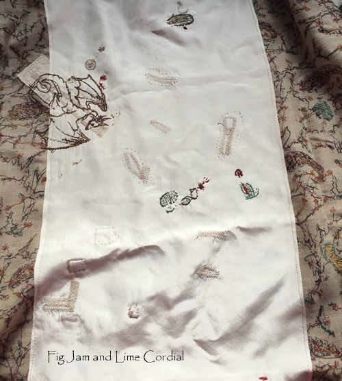 I practised English darning, Scotch darning, seed stitch, buttonhole, honeycomb and chainstitch darns…