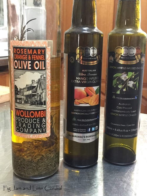 I rummaged through the pantry and found the weirdest assortment of flavoured oils you could imagine. Mango-infused olive oil anyone? No? What about Orange, Rosemary and Fennel?