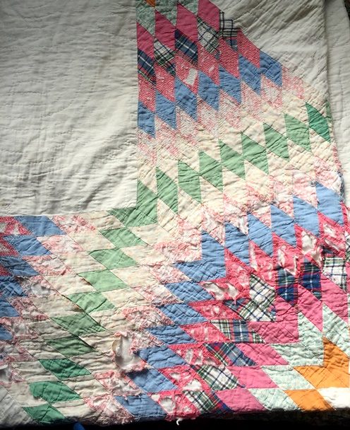 I adore everything about them – the frugality, the make-do spirit, the uniqueness of every single one. I love that they were almost always made from upcycled fabric and clothing, and that they were meant to be true workhorses, designed to keep folks warm during hard times. I love that the ones which survived did so as family treasures – being so coarsely assembled and heavily used meant they didn’t have any value as objet d’arts. However, like many items of this ilk, they carried with them the memories and stories of hard times and sacrifices made by earlier generations.
