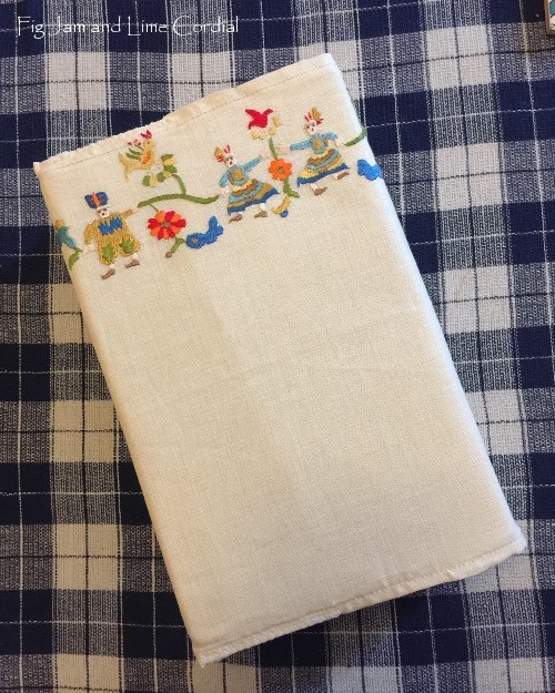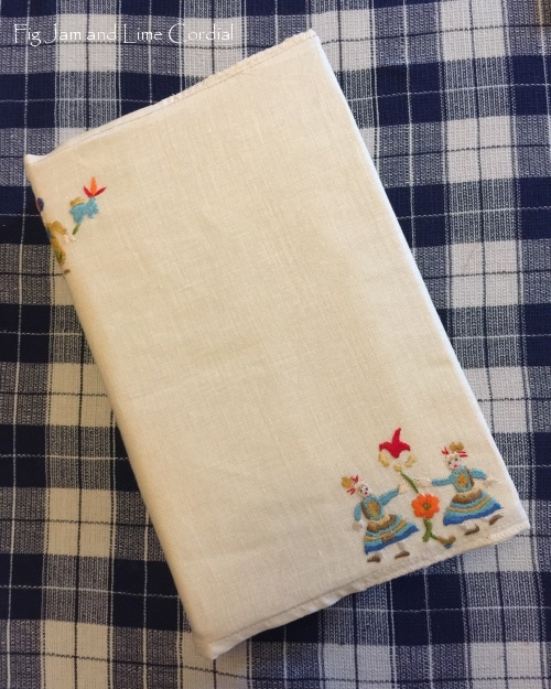 This cover started as a quirky hand embroidered table mat that I rescued from the Salvos for $1. I’m grateful for the opportunity to give a second life to someone’s hours of hard work…