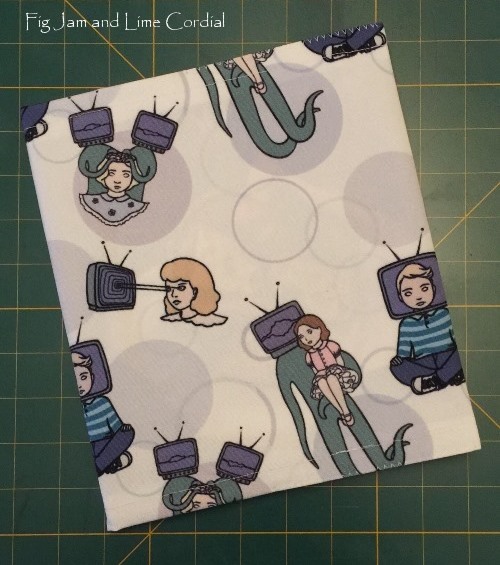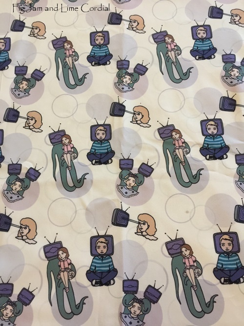 And finally, this piece of fabric has been sitting in my sewing room for a while now. I picked it up from the bin area of Reverse Garbage for $2, but it’s not great material – it has a plasticky texture which makes it both difficult to sew and unsuitable for clothing. But the print was too fun to pass up – who can resist aliens brainwashing children through television sets?