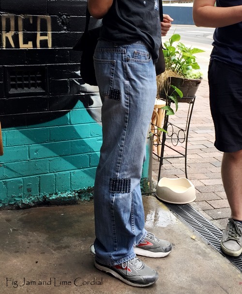 I know that my personal fashion mantra – style is always optional – isn’t for everyone. But we can fix things that never get seen by others – tracksuit pants and pyjamas and socks that hide inside boots. I’ve even patched old underwear, much to Pete’s despair. I thought about it for two seconds, but decided that you don’t need to see a photo. Here’s one of my darling Small Man in his sashiko patched jeans instead…
