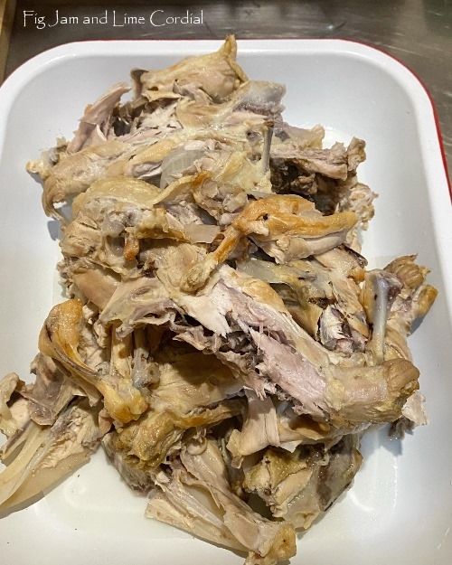 I pulled out the carcasses and carefully stripped any remaining meat off the bones…