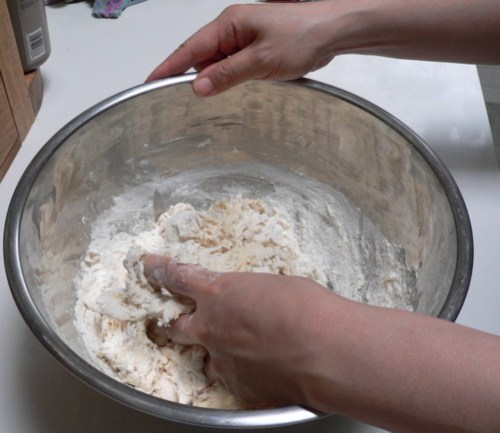2. Knead dough for 10-12 minutes, incorporating additional flour as needed, until dough is firm and smooth. Cover with inverted bowl and let sit 10 minutes.