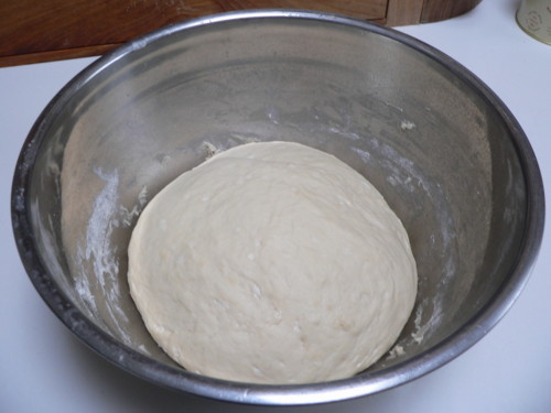 4. Oil the mixing bowl you had the dough in, shape the dough into a ball, and put it back in the bowl to rise. Cover and leave it for about an hour, or until doubled in size.