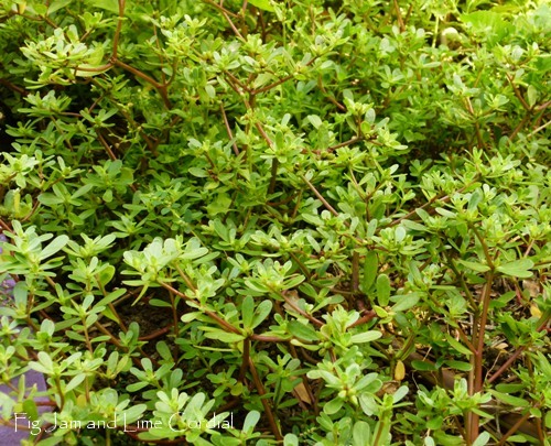 I don’t remember adding purslane seed to the mulch mix, but here it is, nonetheless…