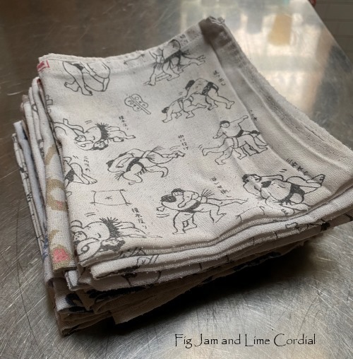 I wouldn’t normally recommend using new fabric to make things, but the tenegui cloths we bought from Daiso have been so durable and low maintenance that it’s hard to fault them. The open weave makes them particularly easy to wash and line dry, and I’ve never bothered to iron them…