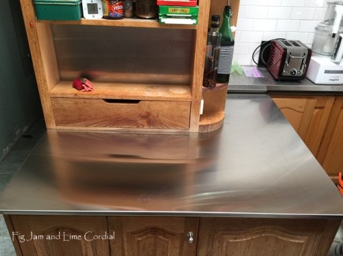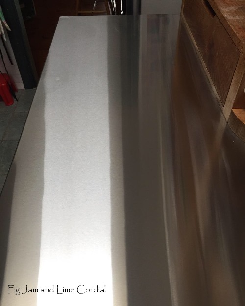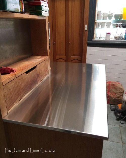 Pete thought it was a good idea to get a stainless steel replacement and his brother, wonderful Uncle Steve, arranged it for us. He came over and built a plywood template, then organised a company in Padstow to make the bench for us. It was surprisingly reasonable – only a few hundred dollars – but I suspect that was Steve’s trade price.