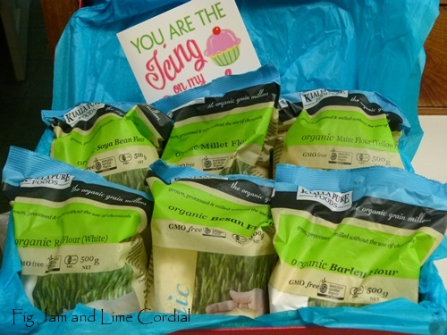 …is a birthday present for Tiny Terri – her favourite chestnut flour brownies and a selection of dark chocolates…