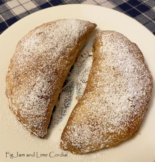 The finished turnovers were dusted in icing sugar. They were a huge hit with both Pete and Small Man!