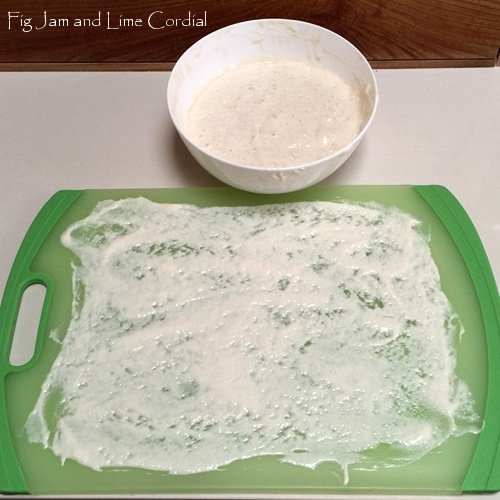 When you next bake, feed your bowl of starter until it’s bubbly and active. Then before you make your dough, spread a little bit of the starter out onto a plastic chopping board or silicone mat (the board seems to work particularly well and is easier to move around). Let it dry out completely…