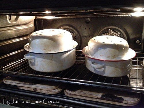 Addendum (2 Feb 2015): the Falcon enamel roasters I use are heat safe to 270C. If you’re using a cast iron enamel pot, check that it can cope with the high temps – often the handles are plastic and will melt at anything over 190C.