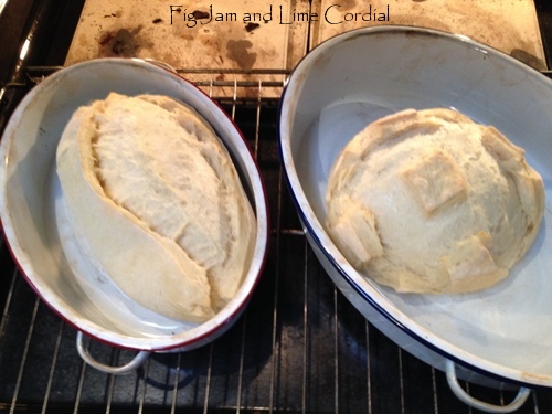Place covered pots into the oven and preheat to maximum. The pots aren’t essential – you could just as easily bake on a pizza stone or oven tray, but the pots produce beautifully shaped loaves.