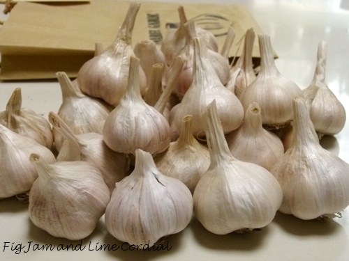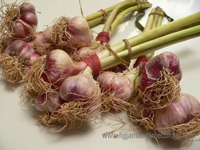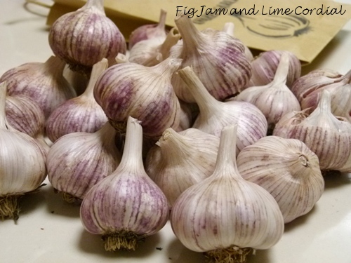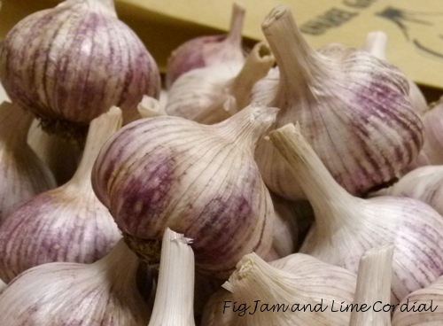 Most of the garlic we bought were Australian whites, with their lightly blushing bulbs and pungent, creamy pink cloves (there’s a kilo of garlic in the photo above)…