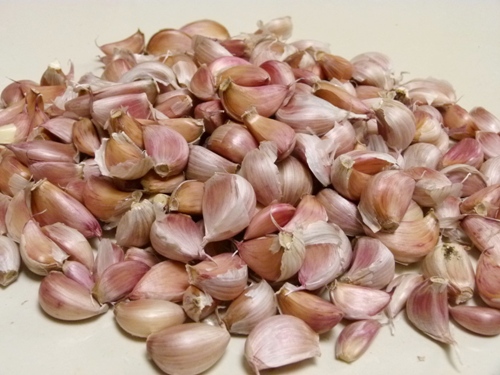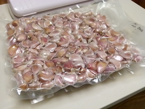 Christina and I have bought our annual supplies, which we’ll be breaking into unpeeled cloves and freezing. Doing so will ensure that we can cook with locally grown garlic all year, without having to buy imported bulbs sprayed with toxic methyl bromide (a mandatory Australian government requirement).