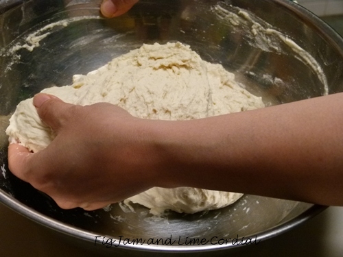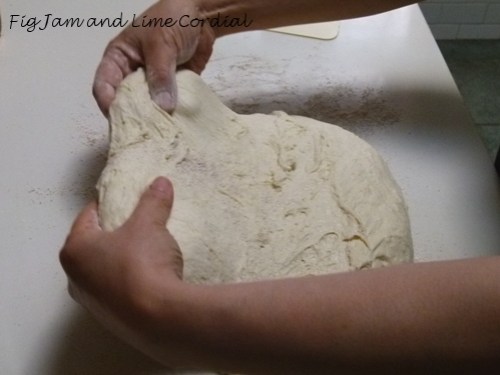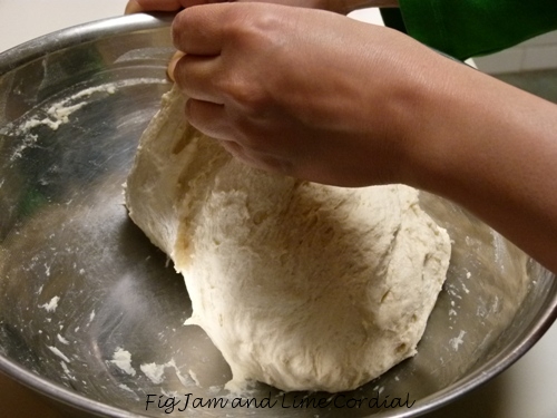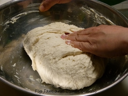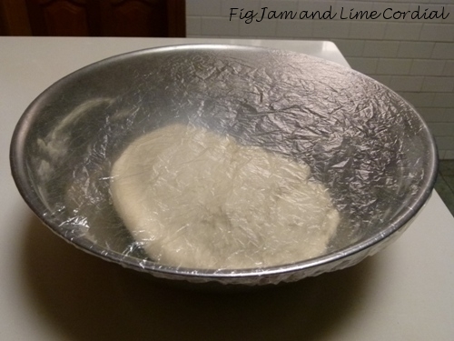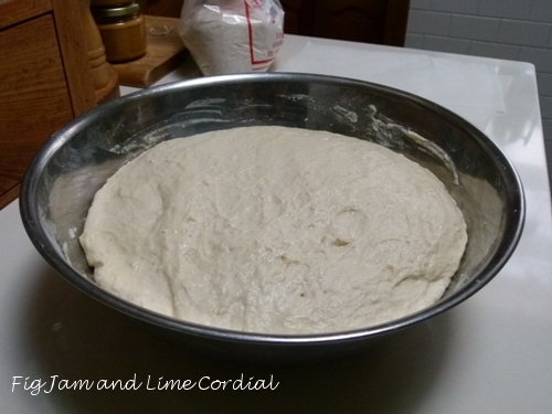 The dough is ready when it’s puffed up and airy – the photo below was taken after three hours rising time in our Sydney winter kitchen.