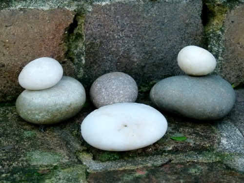 Small Girl (aged two and a half) has been here – she likes to leave carefully arranged pebbles on the steps.  It’s always a treat to go outside and find her latest artwork…