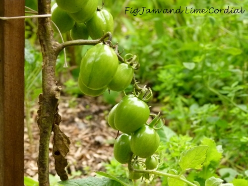 Some optimistic self-seeded tomatoes – we seem to have an assortment of cherry and roma hybrids, all slightly different.  They’re falling off before they ripen, although this branch looks promising…