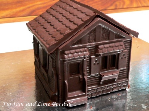 Above is our first attempt at a chocolate house. Moulding the pieces was easy enough, but having enough tempered chocolate at the right temperature to glue it all together was tricky. As was handling the pieces without them melting in our 30°C kitchen! In the end it took both of us to assemble the finished cottage – a little rustic perhaps, and I’m not sure the roof was watertight, but it was eaten before it passed building inspection! This was a trial run – we’re going to try to make one for Christmas day as well. For any Aussies interested in giving this a go, the mould was only a few dollars (you need to buy two) from Roberts Confectionary online.