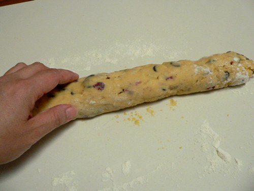 Here’s my recipe, with grateful acknowledgement to Mark and Bruce’s recipe from The Ultimate Cookbook, David Lebovitz’ Chocolate Biscotti recipe, Paul’s recipe at the Mellow Bakers, and a recipe I read online which was attributed to Carol Field’s The Italian Baker.