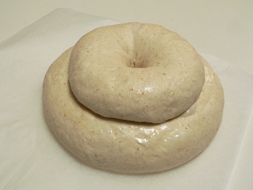 4. Oil the scraped out mixing bowl, and return the dough to it. Cover with cling film and allow the dough to rise for about 1½ hours at room temperature. If it rises too fast, knock the air out of the dough halfway through. Reinhart’s recipe specifies letting the dough prove for 2 hours, but mine was rising too quickly for that. Once the final dough is double its original size, it’s good to go.