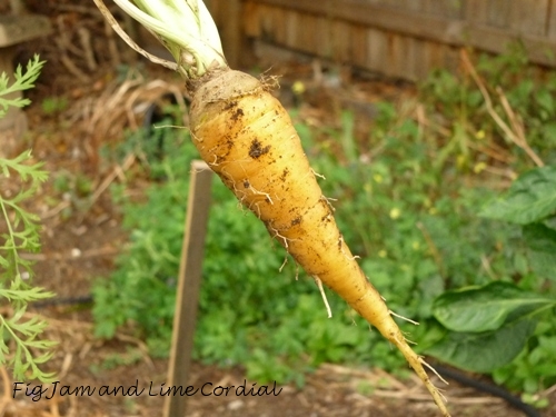 The carrots which we forgot to harvest (I told you we were new at this!) are now a decent size…