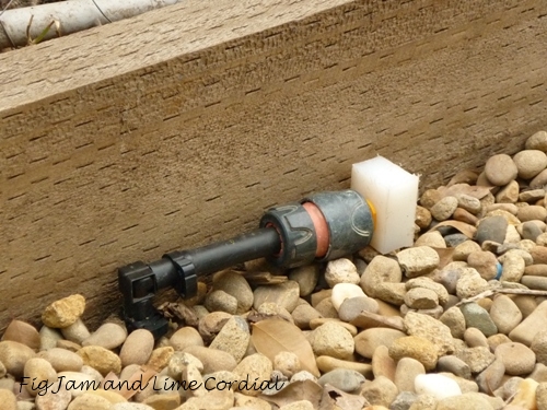 When the chooks are rotated onto a given bed, the circle of hose is removed, and the connector for that bed is capped off with a bespoke plug, bypassing it for the period that the chickens are in residence. Isn’t that clever?