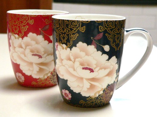 …are two bone china mugs from the new Maxwell & Williams Kimono range, bought for my mother’s birthday. Bone china used to be prohibitively expensive, but in recent years the price has dropped dramatically, and these gorgeous, dishwasher-safe mugs were just a tiny $10 each…