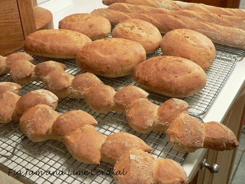 I began with sourdough cheese and olive scrolls – Small Man’s lunches for the coming week. They were made from a batch of dough mixed yesterday evening and left on the bench to prove overnight.  The same dough also made two 750g loaves, which will be eaten over the next  couple of days.