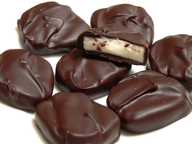 4. Dip the peppermint centres in the chocolate and allow them to set on a tray lined with parchment paper.  Store the finished chocolates in the fridge and try not to scoff them all at once!