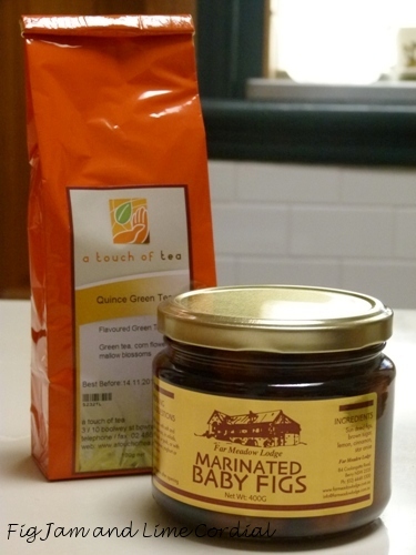 …is a bag of quince green tea and a jar of marinated baby (Persian) figs, a gift from our friends Andrea and Chris…