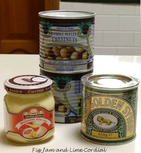 …are imported treats – French chestnuts, Italian mayonnaise and Lyle’s Golden Syrup…