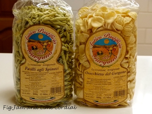 I also have spinach fusilli and orecchiette, the latter being a classic Apulian shape…