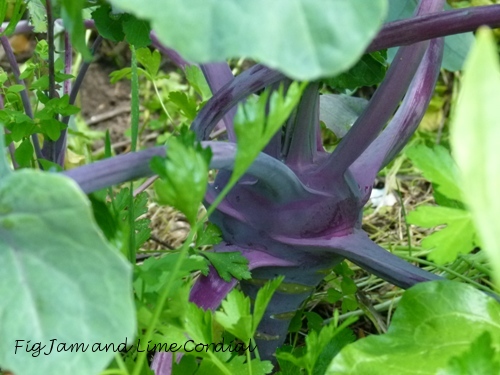 Our bed of kohlrabi is thriving. We’ve been really happy with these plants – they taste like cabbage, are incredibly easy to grow and use, and they’re not plagued with pests in the same way that other brassicas are. They also grow well from directly sown seed…