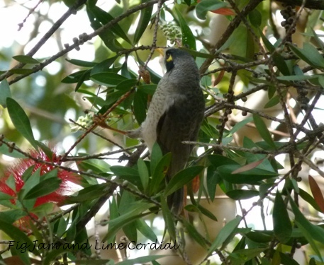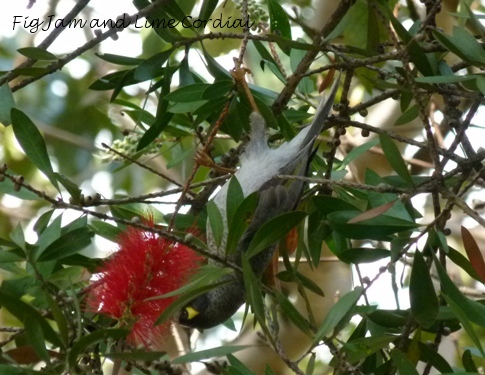 And some photos for Joanna of a lovely acrobatic Soldier Bird feasting on a neighbourhood bottlebrush tree. Also known as the Noisy Miner (not to be confused with the pesky Indian Mynas), both the bird and the tree are native to Australia. Aren’t they lovely?