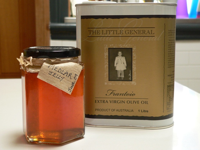 Diana and I are both big fans of The River Cottage series, so when she saw medlar jelly at her local country markets, she bought us a jar to try. It’s a deep amber colour and very softly set.