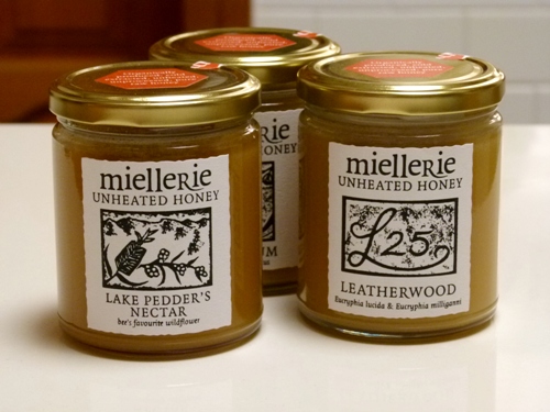 …is a collection of Miellerie Honey from Tasmania. Gorgeous Roz from Taste Travel gifted me a jar of the Lake Pedder honey, and I’ve been hooked ever since…