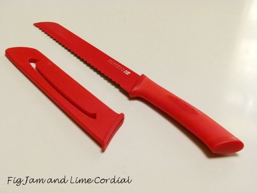…is a Scanpan bread knife with holder. My homemade ciabatta can be challenging to slice with a dodgy knife, so I thought I’d buy a sharp serrated blade that I could take on my travels…