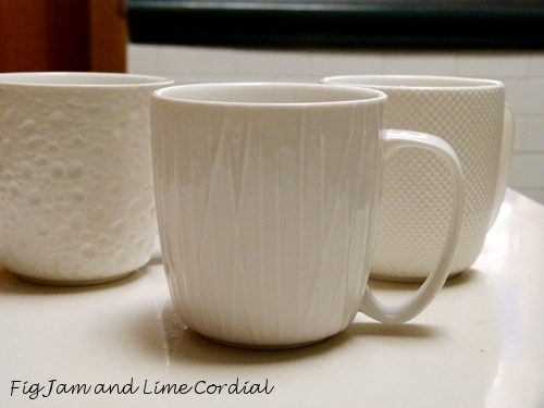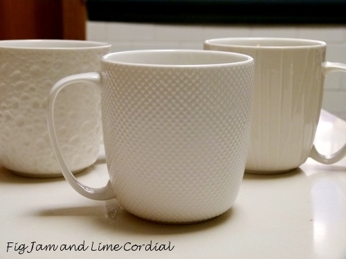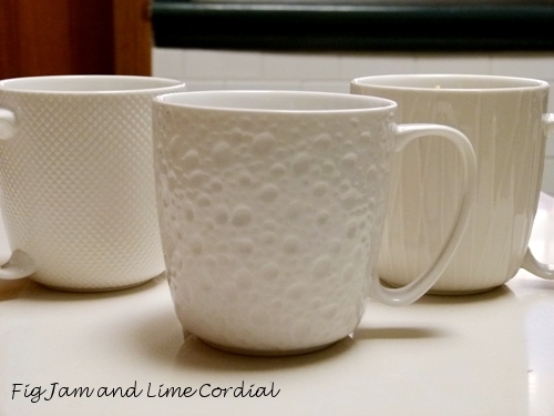 …are some new textured mugs. Made by Ecology Homewares, each design comes in a box of four, but I split packs with my mum and Uncle Steve (Pete’s brother), so that we could all have one of each. They worked out at about $5 per mug.