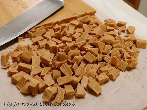 …is a large slab of caramelised white chocolate. I re-melted the jarred chocolate and tempered it with more white chocolate…