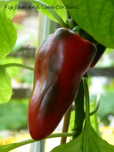 And finally, a photo of our bull capsicums, which are being grown indoors. I think the seeds came from the CityHippyFarmGirl – thanks Brydie! The first one has just ripened…