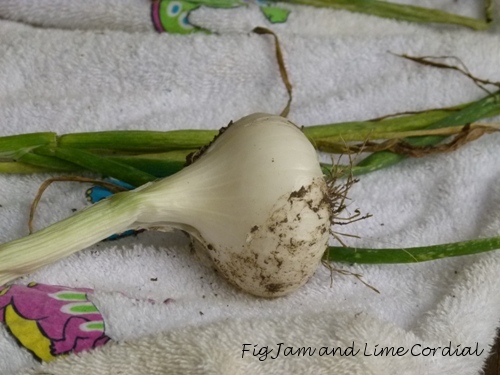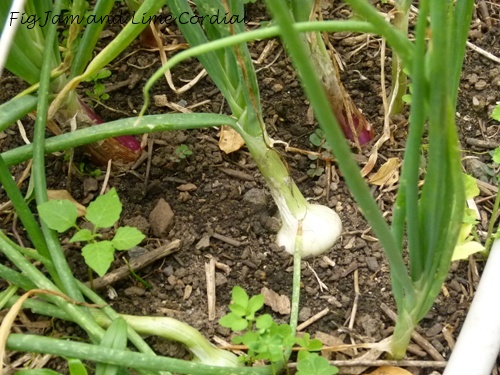 Our onions were transplanted from a previous bed and after nearly a year, we’re finally starting to get bulbs…