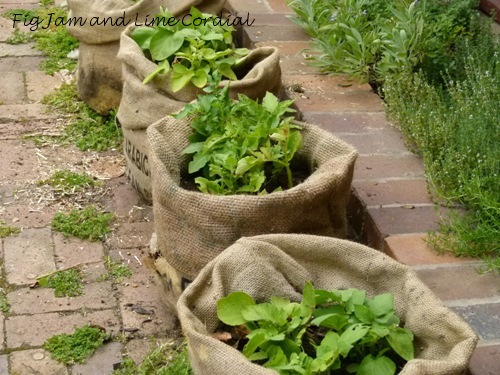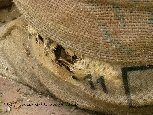 The potatoes in sacks have been an interesting exercise. They’ve suffered from the wet weather, but are still growing well, and we’ve recently hilled them up, unrolling the sacks in the process…
