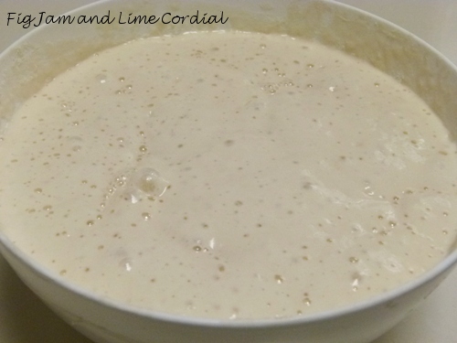 …is a bowl of ripening sourdough starter. See all the bubbles breaking the surface? That’s a good thing…